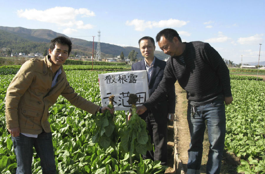 效果:云南通海縣九龍村種植戶譚蓉,經營大面積萵筍,往年種植的萵筍出苗晚,苗勢不齊,萵筍上的蟲害也多,偶然聽到旁邊的種植戶用過微根露效果好之后,也用了一次,當季的萵筍比對照田沒有用過的明顯提苗快,葉片濃綠,蟲害少,長勢旺盛,而且根也粗壯很多,譚蓉高興的說,要想作物生根壯苗,一定要用微根露。