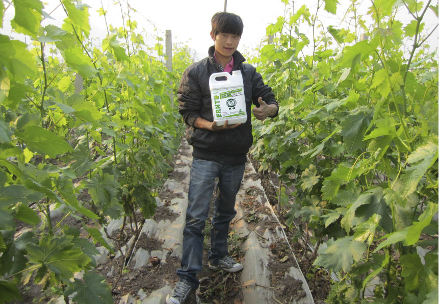 云南農戶楊宏苑,種植了半畝的葡萄,施用了半桶微根露加上藍色莊園氮肥后,不但葡萄白根多,苗齊整,葉大,葉色濃綠,且施用后極大的促進了后續肥料的吸收,而旁邊種植戶沒有用過微根露,葡萄苗長得不整齊,而且開花也相對比較少。楊宏苑自己說這么好的產品,應該讓更多的農戶都用到。